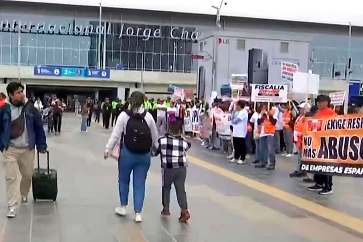 Un grupo de representantes y trabajadores de 35 empresas realizó una protesta en el segundo nivel del Aeropuerto Internacional Jorge Chávez, exigiendo el pago inmediato por los trabajos ejecutados durante la construcción del nuevo terminal aéreo.