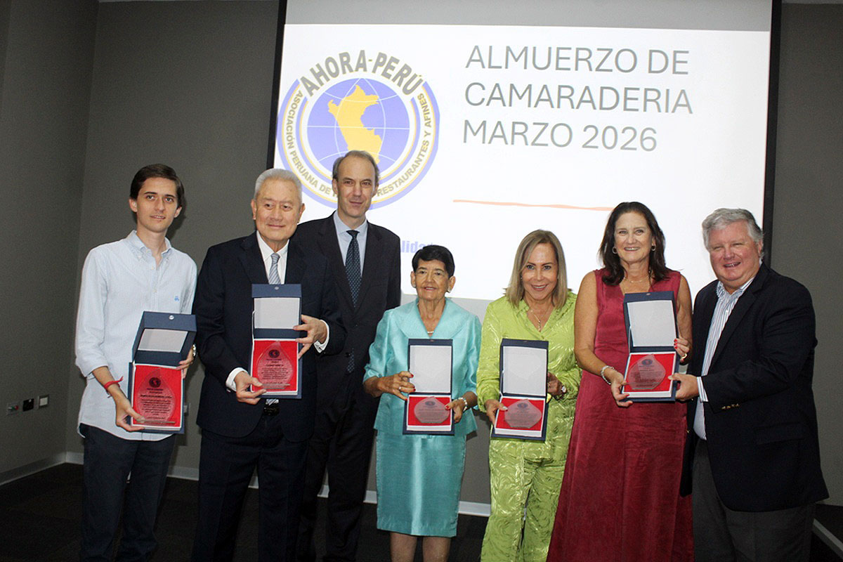 Uno de los momentos más destacados del evento fue el reconocimiento a cinco representantes del sector por su trayectoria y por el trabajo realizado en favor del desarrollo de la hotelería, la gastronomía y las actividades afines en el Perú.