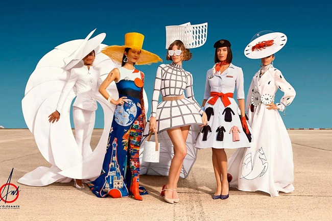 Para representar y dar vida a 90 años de elegancia, Air France reveló una colección de cinco vestidos icónicos, creados por Xavier Ronze, jefe de los talleres de vestuario del Ballet de la Ópera de París, que interpretan los diferentes rasgos distintivos de la aerolínea: aviones y tecnología; uniformes y moda; sus icónicos carteles que promocionan su vasta red; la alta gastronomía y la vajilla; el diseño y la arquitectura.