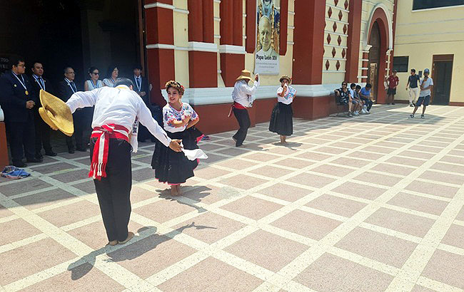 El recorrido continuó hacia Monsefú, donde la Parroquia San Pedro recibió a la delegación con expresiones culturales como el tondero. Este templo, construido en 1844, combina estilos coloniales y renacentistas, y resguarda importantes elementos artísticos, como retablos barrocos y pinturas murales.