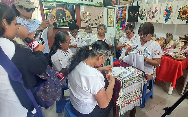 En este espacio también se exhiben fotografías y recuerdos del paso de Prevost por la parroquia, así como piezas de la tradición textil local. La visita incluyó un acercamiento al trabajo de las maestras bordadoras de Monsefú, evidenciando la integración entre cultura, identidad y turismo.