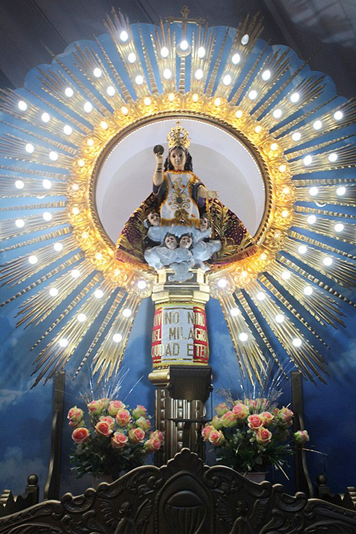 El templo destaca por su altar elaborado con piedras naturales de Cajamarca y por elementos simbólicos como el tragaluz que representa la Santísima Trinidad. En su interior se exhiben pinturas vinculadas a las apariciones del Niño Jesús, realizadas por artistas de la Escuela Cusqueña.