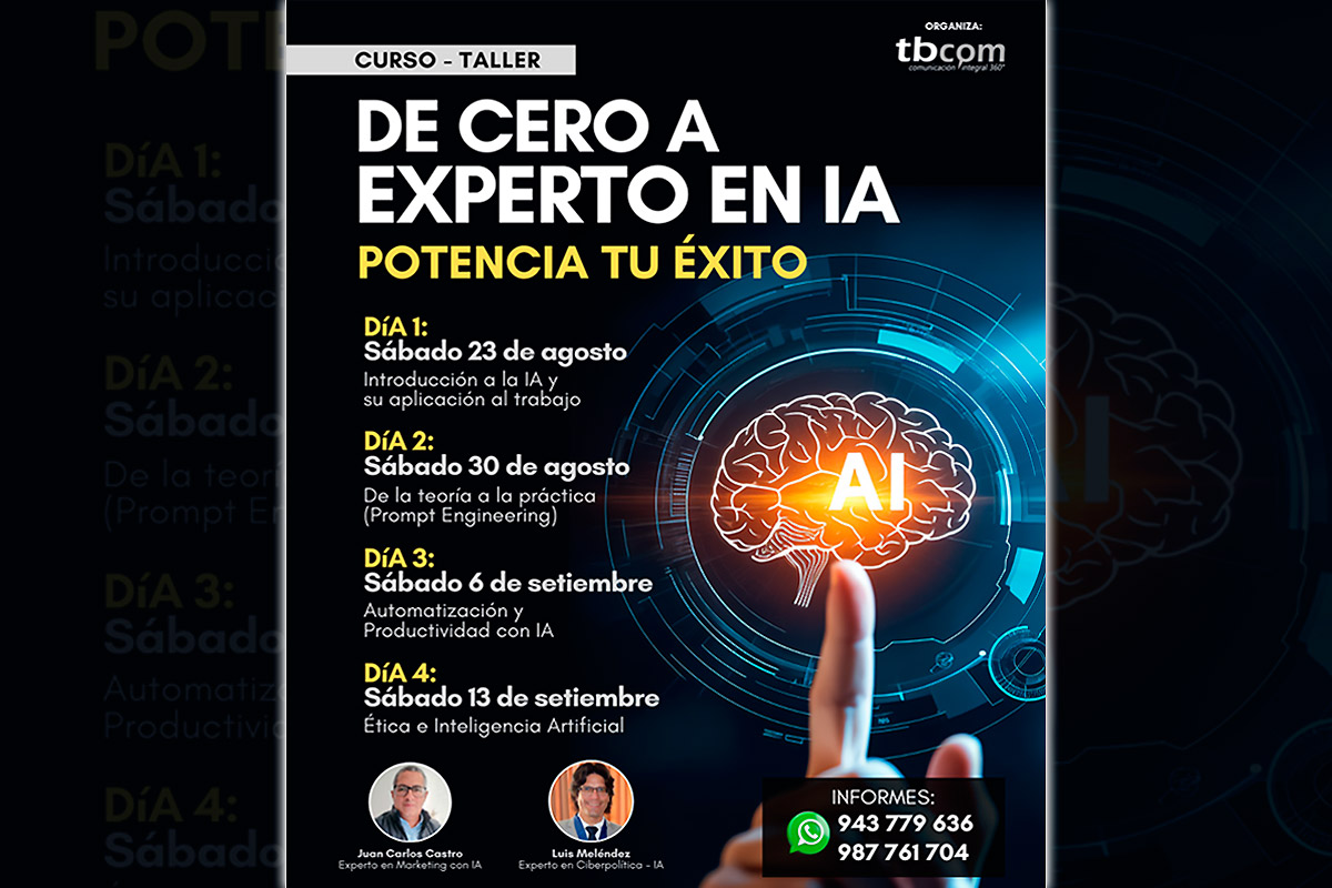 Aprender a usar la inteligencia artificial para trabajar menos y lograr más ya es posible. TBCOM Comunicación 360°, división tecnológica de Turiweb, lanza el curso-taller “De Cero a Experto en IA: Potencia tu Éxito”, una capacitación intensiva para dominar la IA generativa sin conocimientos previos y aplicarla de inmediato en tu negocio o trabajo.