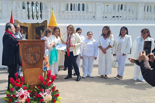 La ceremonia de develación se realizó en la Biblioteca Municipal, ubicada en la plaza principal. Este inmueble neoclásico, de 400 m², es un referente cultural para vecinos y visitantes.