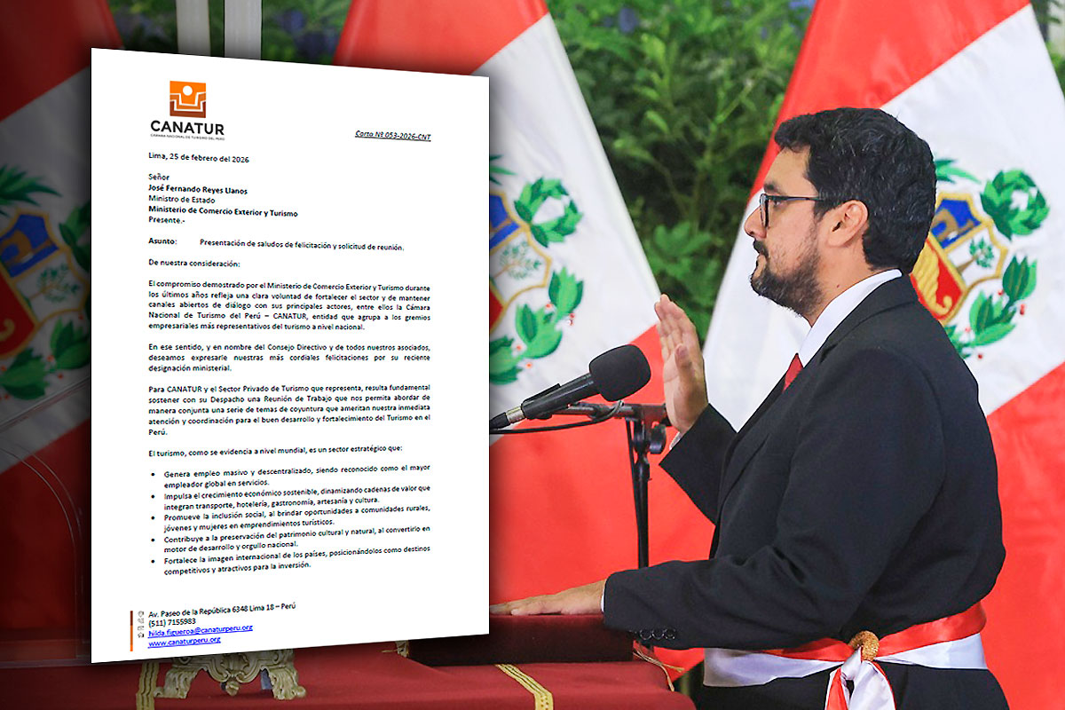 La Cámara Nacional de Turismo del Perú (Canatur) solicitó formalmente una reunión de trabajo con el nuevo ministro de Comercio Exterior y Turismo, José Fernando Reyes Llanos, con el objetivo de abordar temas de coyuntura que requieren atención y coordinación inmediata.