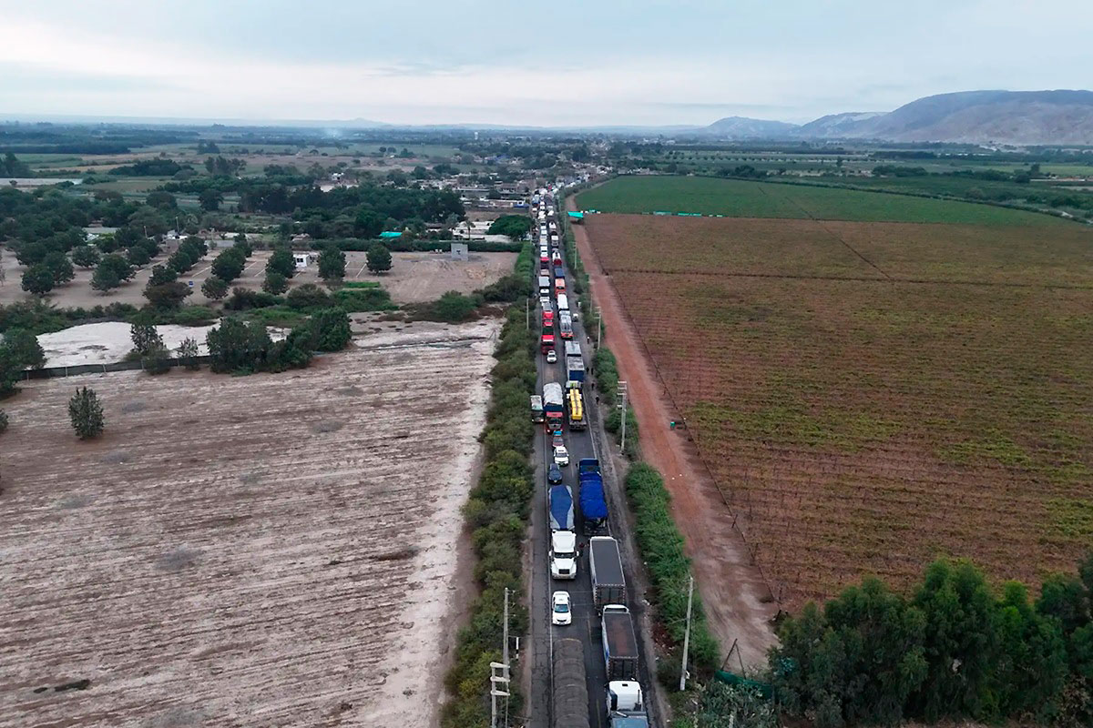 Según informó la agencia Andina, la fila de vehículos varados se inicia en el sentido de norte a sur desde el km 317 de la Panamericana Sur en el distrito de iqueño de Santiago en donde los choferes pugnan por continuar con su destino.