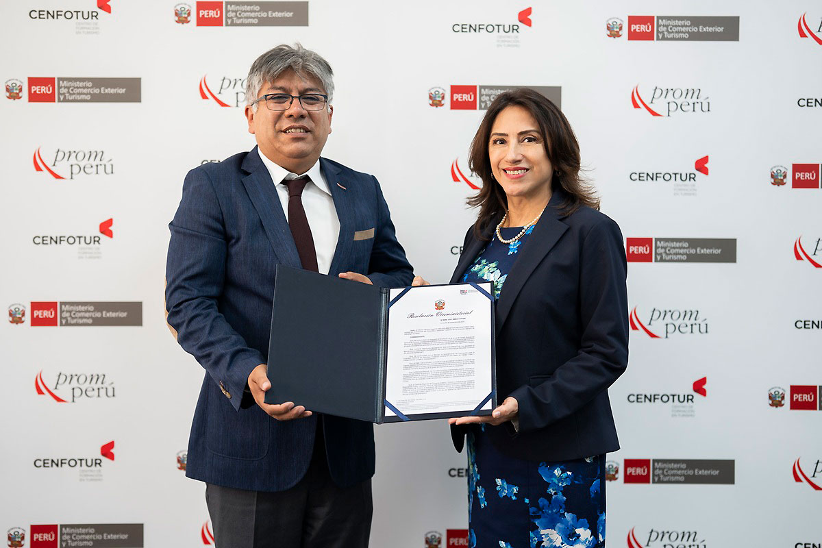 La ministra de Comercio Exterior y Turismo, Teresa Mera, entregó el reconocimiento al gobernador regional de Cusco, Werner Salcedo, durante una ceremonia realizada en la sede del ministerio. En la ocasión, la titular del sector destacó que el Centro Histórico “refleja la fuerza de nuestra historia y la esencia del Perú ante el mundo”.