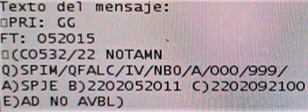 NOTAMN de la DGAC sobre lo ocurrido en el aeropuerto de Jaén. (Imagen: Aeronoticias)