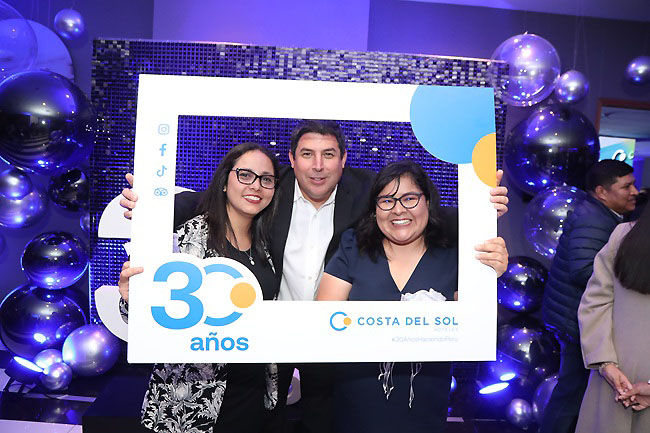 La cadena hotelera peruana Costa del Sol celebró ayer su aniversario número 30 con una ceremonia oficial que reunió a directivos, colaboradores y socios estratégicos. En su discurso, el gerente general de la empresa, Sergio Rivas, destacó los principales logros de la compañía durante este año, pese al contexto adverso que enfrenta el sector turismo en el país.