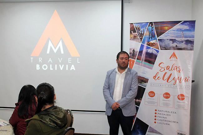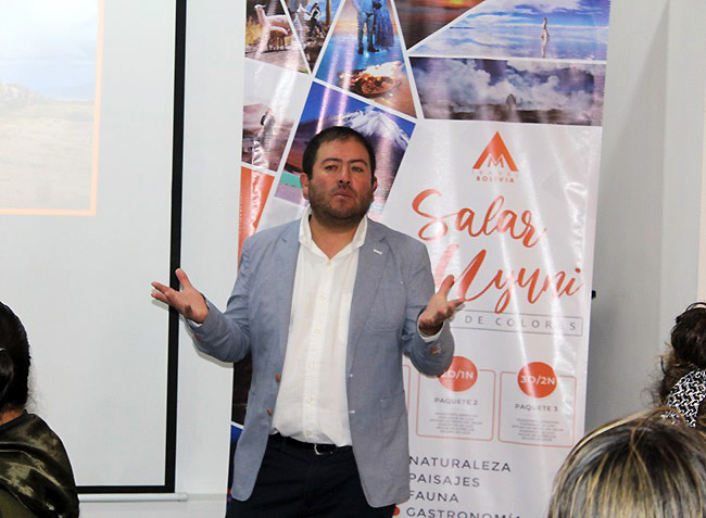 Durante su presentación, Arce destacó que su empresa vende y opera diversos destinos de Bolivia, pero cuatro de ellos son los productos principales: La Paz, Uyuni, Potosí y Sucre.