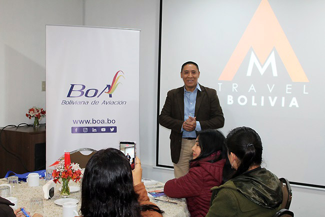 Un importante grupo de agencias de viajes de Lima tuvo la oportunidad de conocer los principales atractivos turísticos de Bolivia en el desayuno de capacitación organizado por el operador AM Travel Bolivia y la aerolínea Boliviana de Aviación (BoA).