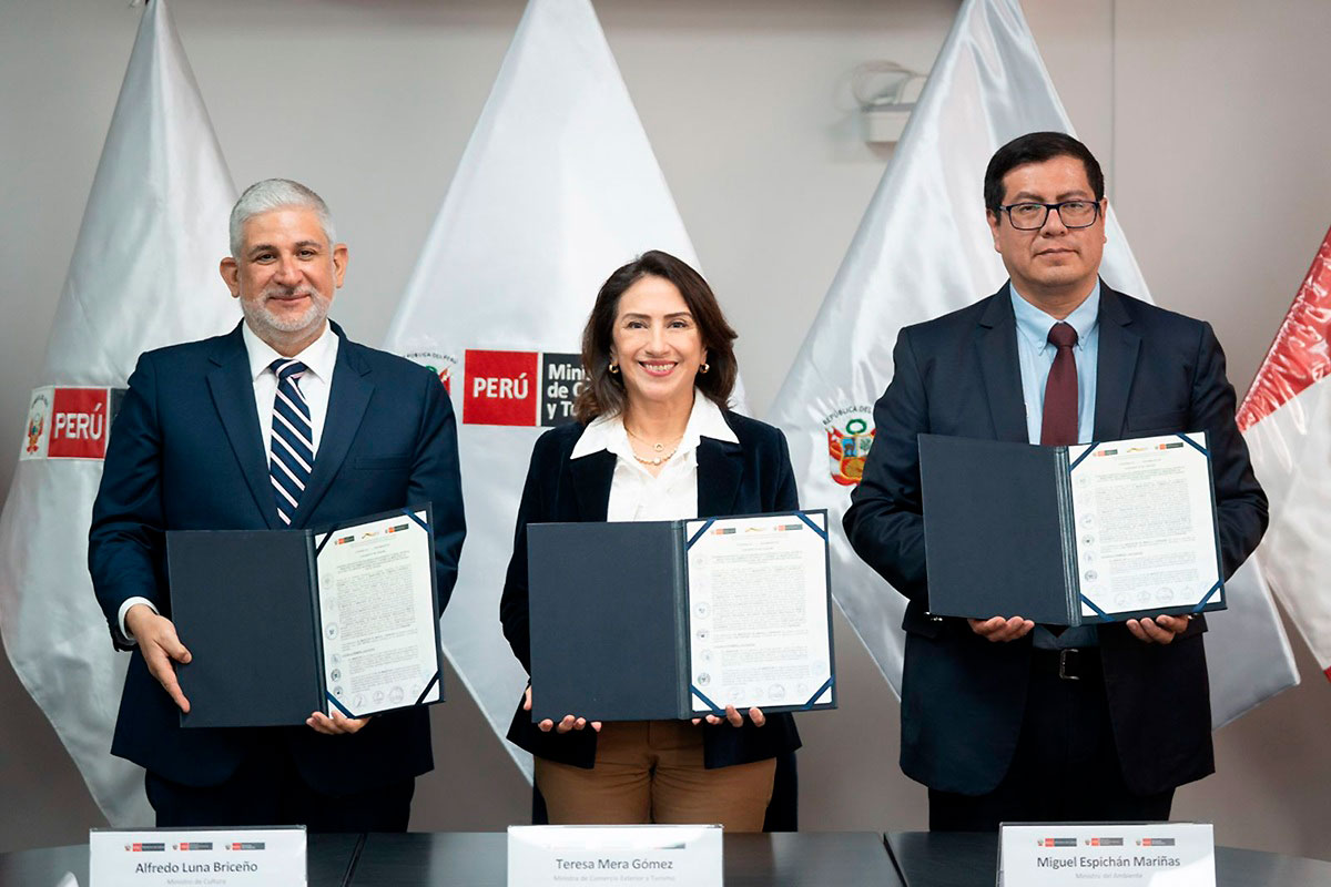 La firma protocolar del acuerdo contó con la presencia de la titular del Mincetur, Teresa Mera, así como de los ministros de Cultura, Alfredo Luna, y del Ambiente, Miguel Espichán.