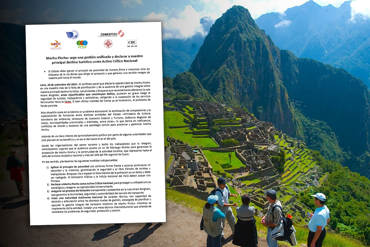 “El turismo no puede seguir siendo rehén de conflictos locales, intereses particulares o políticos. Machu Picchu es la joya cultural del Perú, patrimonio de la humanidad y motor clave de la economía nacional. Su afectación no solo daña la imagen internacional del país, sino que compromete la confianza de miles de familias que dependen de esta actividad para subsistir. Es momento de actuar con responsabilidad y firmeza”, añadieron.