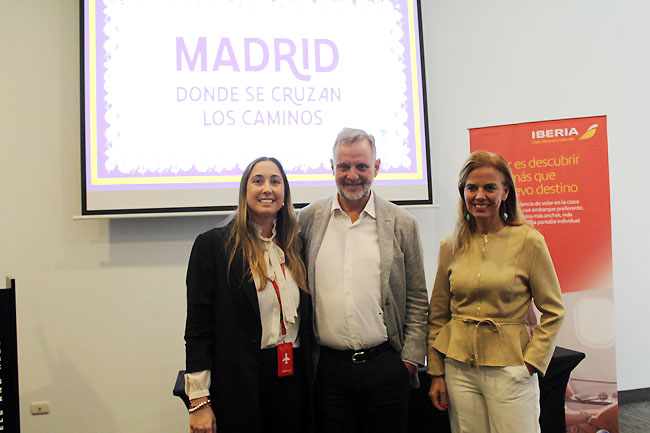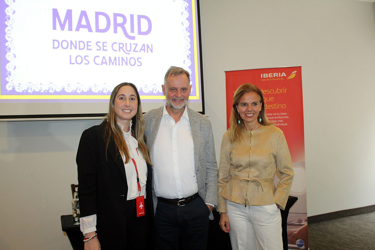 Carolina Vigil, Country Manager Perú de Iberia; Juan Cierco, director Corporativo de Iberia; y Almudena Maíllo, concejala delegada de Turismo del Ayuntamiento de Madrid.