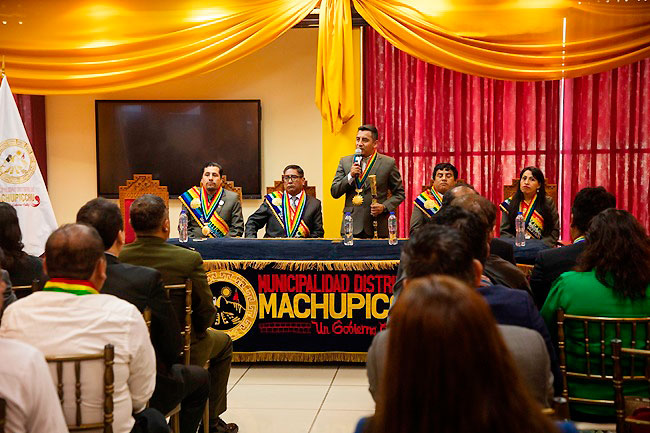 En Machu Picchu Pueblo se realizó esta mañana una emotiva Sesión Solemne presidida por el alcalde distrital Elvis La Torre Uñaccori, acompañado de su plana de regidores.