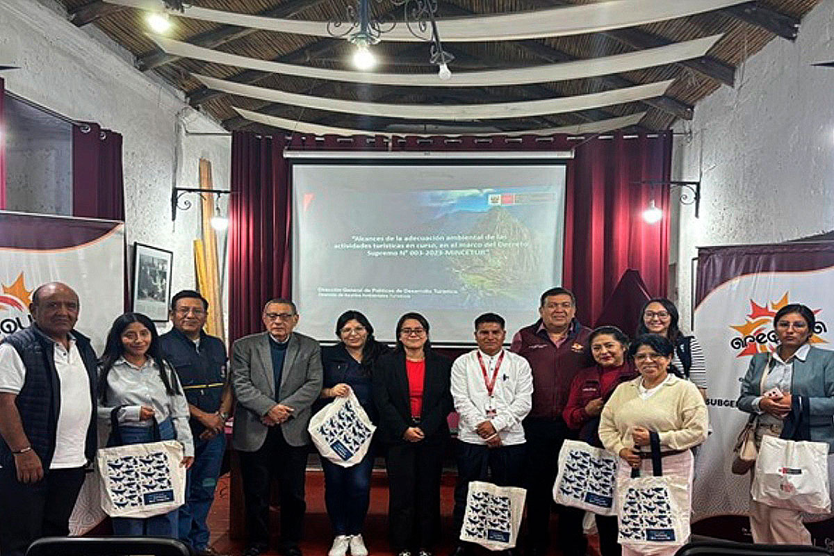 El Ministerio de Comercio Exterior y Turismo (Mincetur), en coordinación con el Gobierno Regional de Arequipa. a través de la Gerencia Regional de Comercio Exterior y Turismo, organizó la asistencia técnica titulada “Alcance de las competencias de los Gobiernos Regionales en Supervisión Ambiental Turística: Reglamento de Gestión Ambiental del Sector Turismo”, dirigida a los profesionales del gobierno regional que ejercen funciones de supervisión y fiscalización ambiental en materia de turismo.
