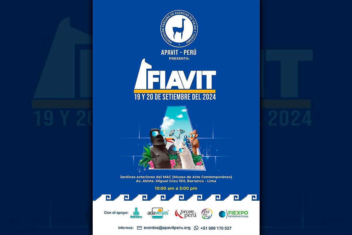La Asociación Peruana de Agencias y Turismo (Apavit) viene preparando todos los detalles de la VII Feria Nacional e Internacional de Turismo – APAVIT 2024, que se realizará el próximo jueves 19 y viernes 20 de setiembre en los jardines del Museo de Arte Contemporáneo en Barranco, Lima.