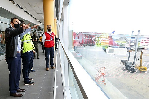 Junto a los ministros de Transportes y Comunicaciones, Carlos Estremadoyro, y del Interior, César Gentille, el Jefe de Estado supervisó el reinicio del transporte aéreo internacional, así como la implementación de los lineamientos sanitarios establecidos para prevenir el contagio del coronavirus en dicho servicio.