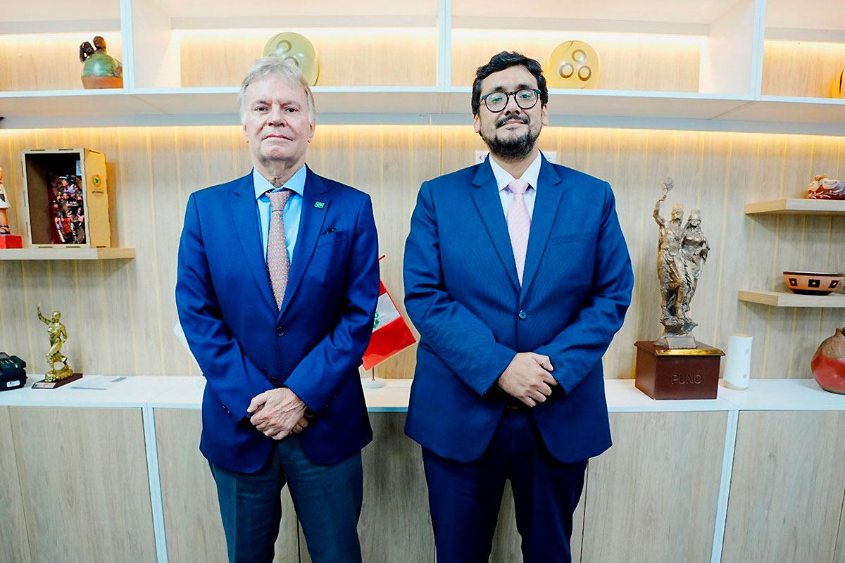 Como parte de una agenda orientada a fortalecer las relaciones bilaterales, el ministro de Comercio Exterior y Turismo, José Reyes, se reunió con el embajador de Brasil en Perú, Clemente Baena, para evaluar medidas que fortalezcan el comercio y la actividad turística.