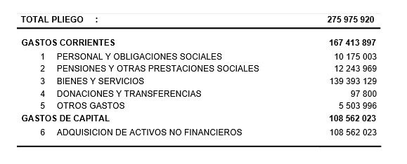 Finalmente, cabe señalar que el 60.6% del presupuesto 2020 del Mincetur está destinado a gastos corrientes (S/ 167,413,897) y el 39.4% del total a gastos de capital (S/ 108,562,023), tal como se aprecia a continuación: