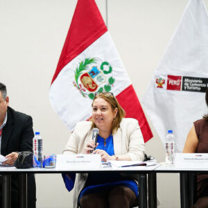 La sesión fue presidida por la viceministra de Turismo, Aracelly Laca, junto con el Ministerio de Economía y Finanzas (MEF), a través de la coordinadora de Mesas Ejecutivas, Antonella Romero, y contó con la participación de entidades del Estado y de los principales gremios turísticos del país.